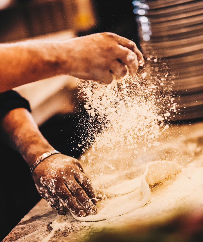 Wir setzen mit unserer Küche auf das so genannte Front Cooking Konzept. Das heißt, dass Du freien Blick auf das Werk unserer Köche hast, während diese Deine Pizza frisch im Steinofen oder ausgewählte Fleischgerichte auf unserem Lavasteingrill zubereiten.